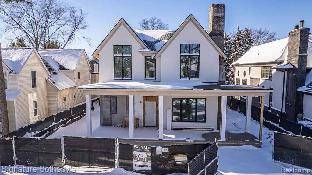 Crafted by Hunter Roberts Homes in collaboration with architect Brian Neeper, this under-construction residence embodies clean, modern proportions and timeless character just steps from downtown Birmingham. Offering 4 bedrooms, 4.2 bathrooms, and 3,239 square feet of thoughtfully composed space, the home blends design-driven form with effortless functionality. Inside, wide-plank wood flooring anchors an open, airy floor plan. The kitchen, curated by Maison Birmingham, features a premium appliance suite, generous island seating, and seamless flow to the dining area and family room. Centered on a refined fireplace, the family room extends naturally to the backyard through sliding doors, balancing interior elegance with outdoor livability. Each bedroom is en suite, with the private primary suite offering a calm retreat enhanced by a spacious walk-in closet and a bath that evokes a tailored spa sensibility. A second-floor laundry provides everyday convenience, while the finished lower level expands the footprint with a guest suite, offering privacy and flexibility. A covered front porch and gabled roofline define the home’s clean architectural presence. Smooth stucco cladding and large-format windows bring a modern edge to the classic form. An attached two-car garage offers practical access without disrupting the home’s clean lines or layout. Set in a walkable, tree-lined neighborhood moments from Birmingham’s shops, dining, and parks, this residence is a rare opportunity to own new construction rooted in architectural discipline and refined craftsmanship.